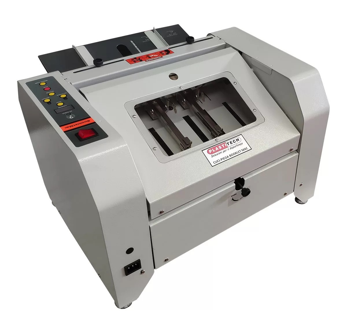 Nuova cucipiega completamente automatica a 2 teste con ribattitori mobili. Grazie al formato maggiorato, permette di gestire, oltre al normale opuscolo A4 verticale, opuscoli in formato A4 orizzontale, con lunghezza...