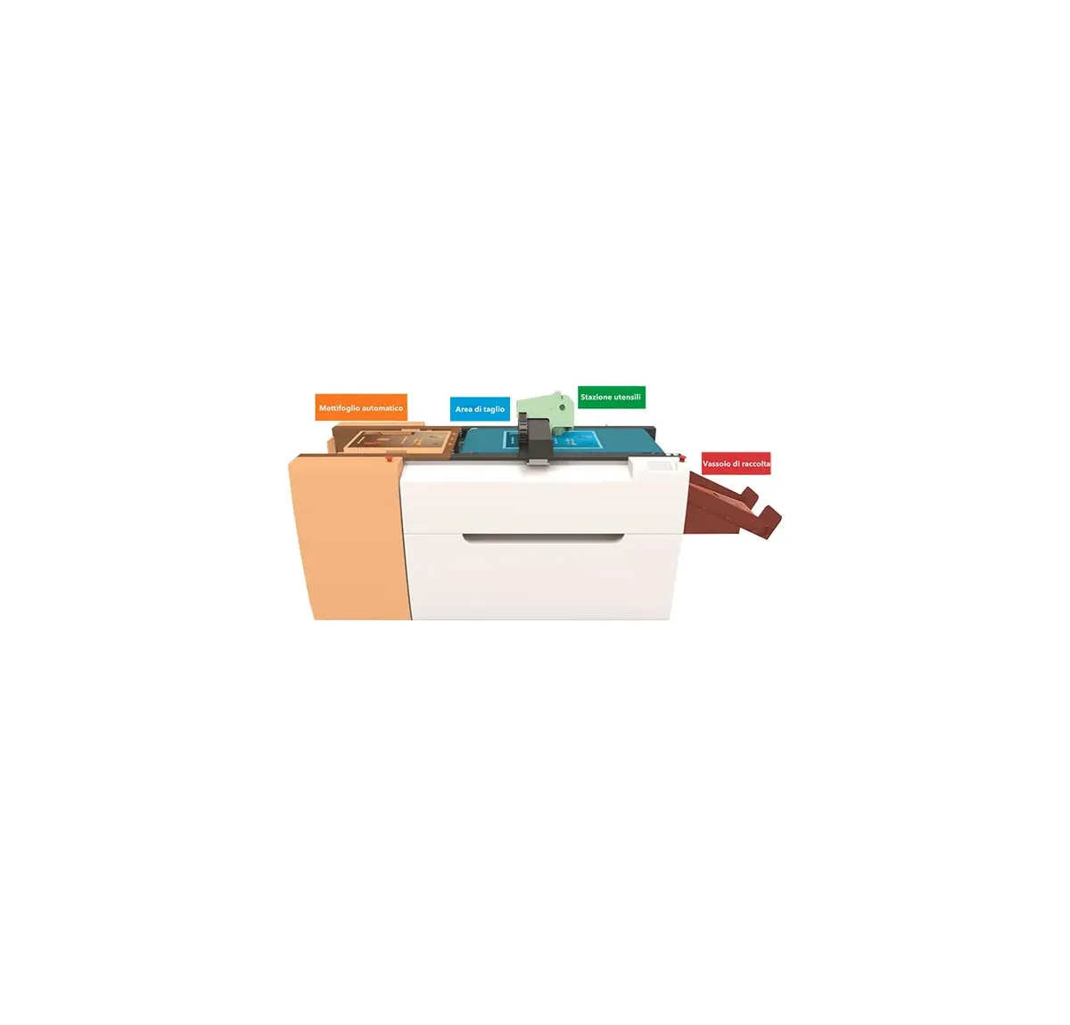 • Collegamento senza soluzione di continuità con software di progettazione e software per progettazione di scatole, compatibile con Corel Draw, Adobe Illustration, ArtiosCad, Kasemake, ecc.