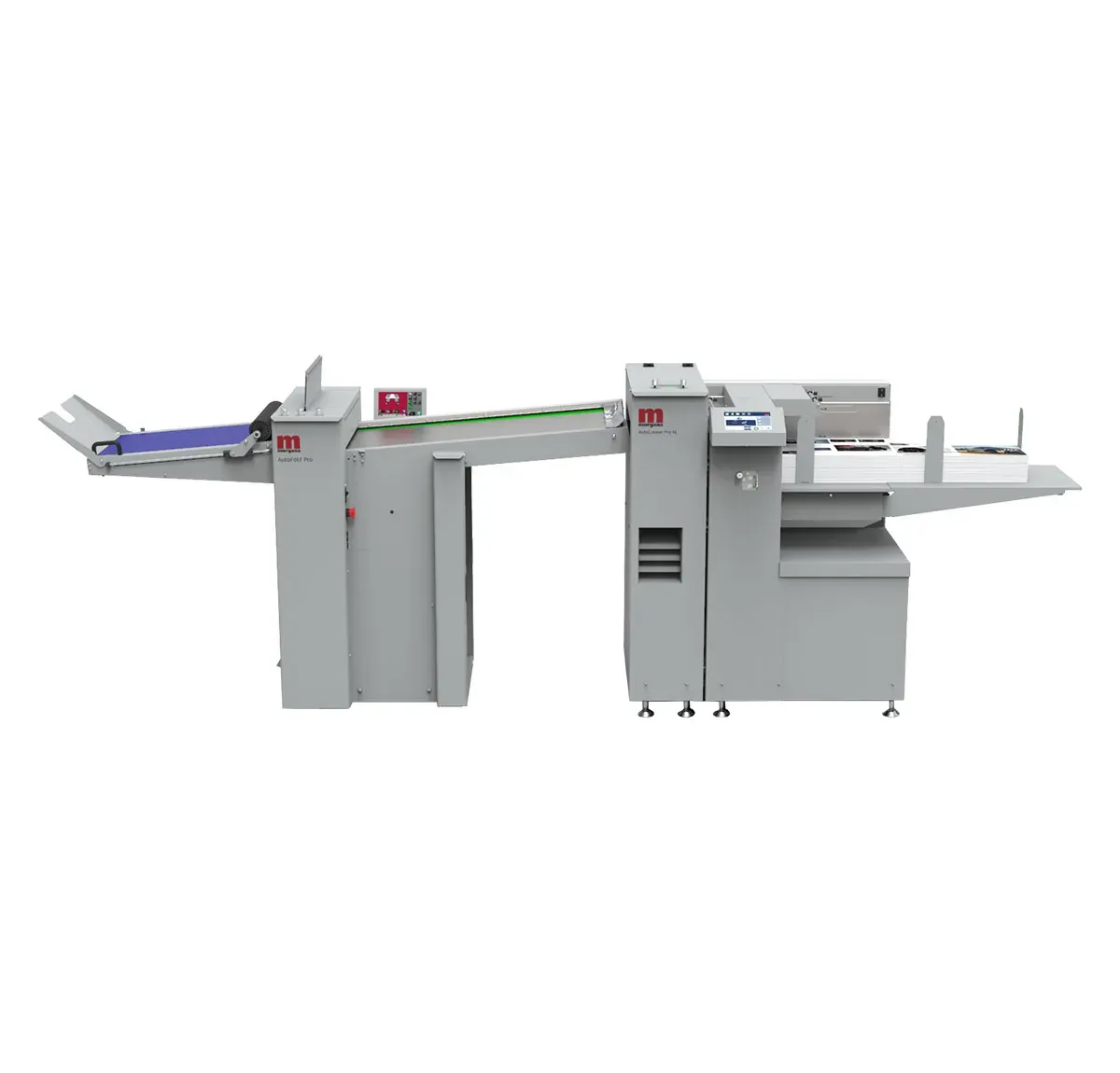 La nuova AUTOCREASER PRO XL può essere collegata ad AUTOFOLD PRO per fornire una soluzione di finitura ancora più completa. AUTOFOLD PRO è un sistema di piegatura automatico progettato specificamente per la stampa professionale. Appositamente progettato per piegare supporti digitali, utilizza la tecnologia brevettata “Flying Knife”, sviluppata per evitare graffi e segni sui supporti digitali. AUTOFOLD PRO viene semplicemente trasportata su ruote e collegata alla cordonatrice all’altezza della sua uscita in modo semplice e veloce.