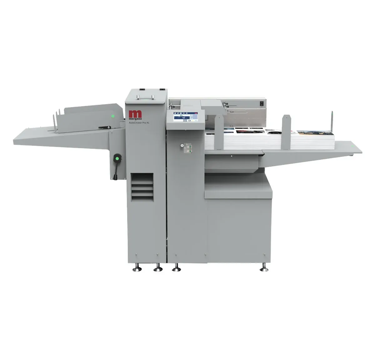 AUTOCREASER PRO XL è la nuova cordonatrice automatica MORGANA, facile da usare, con alimentazione ad aspirazione con presa dall’alto. L’esclusiva matrice di cordonatura di AUTOCREASER PRO XL elimina lo screpolamento della carta digitale e quindi la rottura del toner.