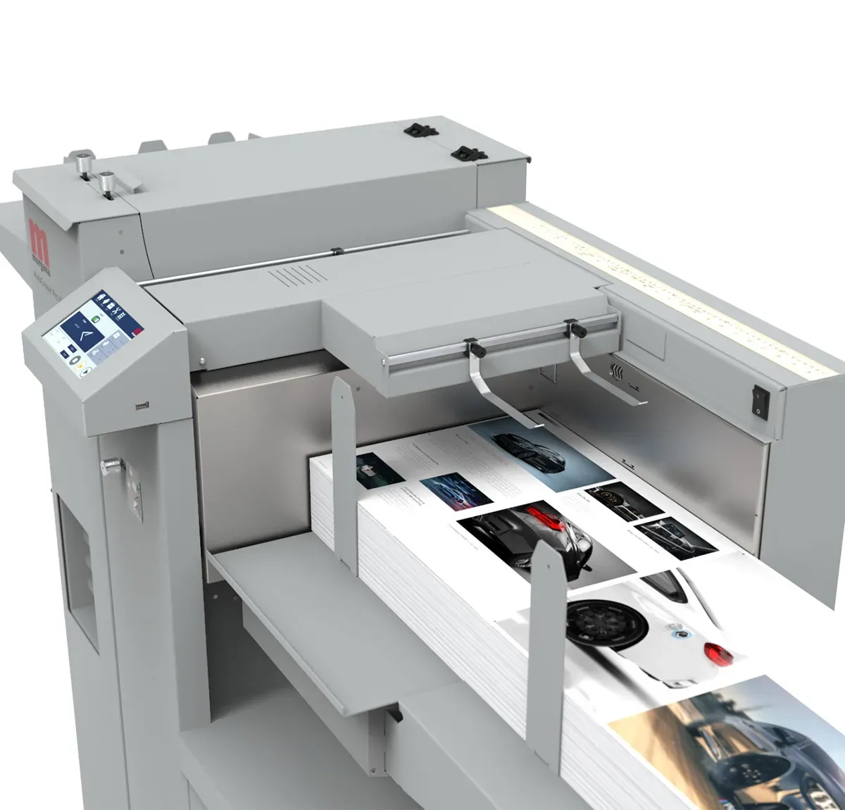 Lavorando fino ad un massimo di 8.500 fogli A4 all’ora, senza perdita di precisione, AUTOCREASER PRO XL è la cordonatrice MORGANA più produttiva di sempre. La nuova AUTOCREASER PRO XL può gestire un formato carta fino a 385 mm x 1300 mm, grazie all’estensione del tavolo di lavoro di serie con la macchina.