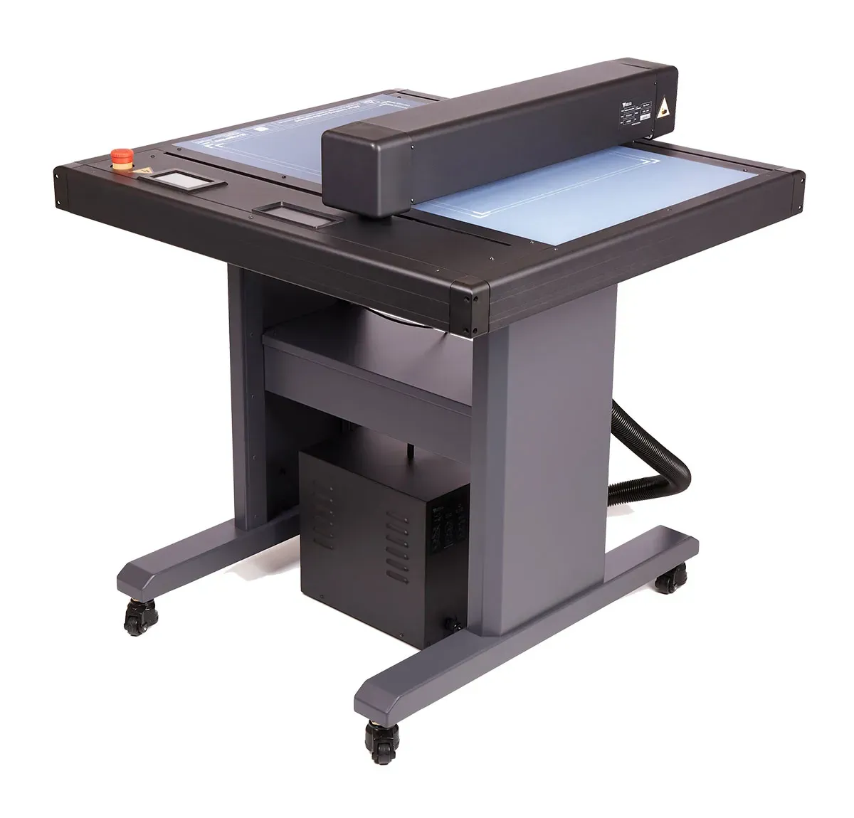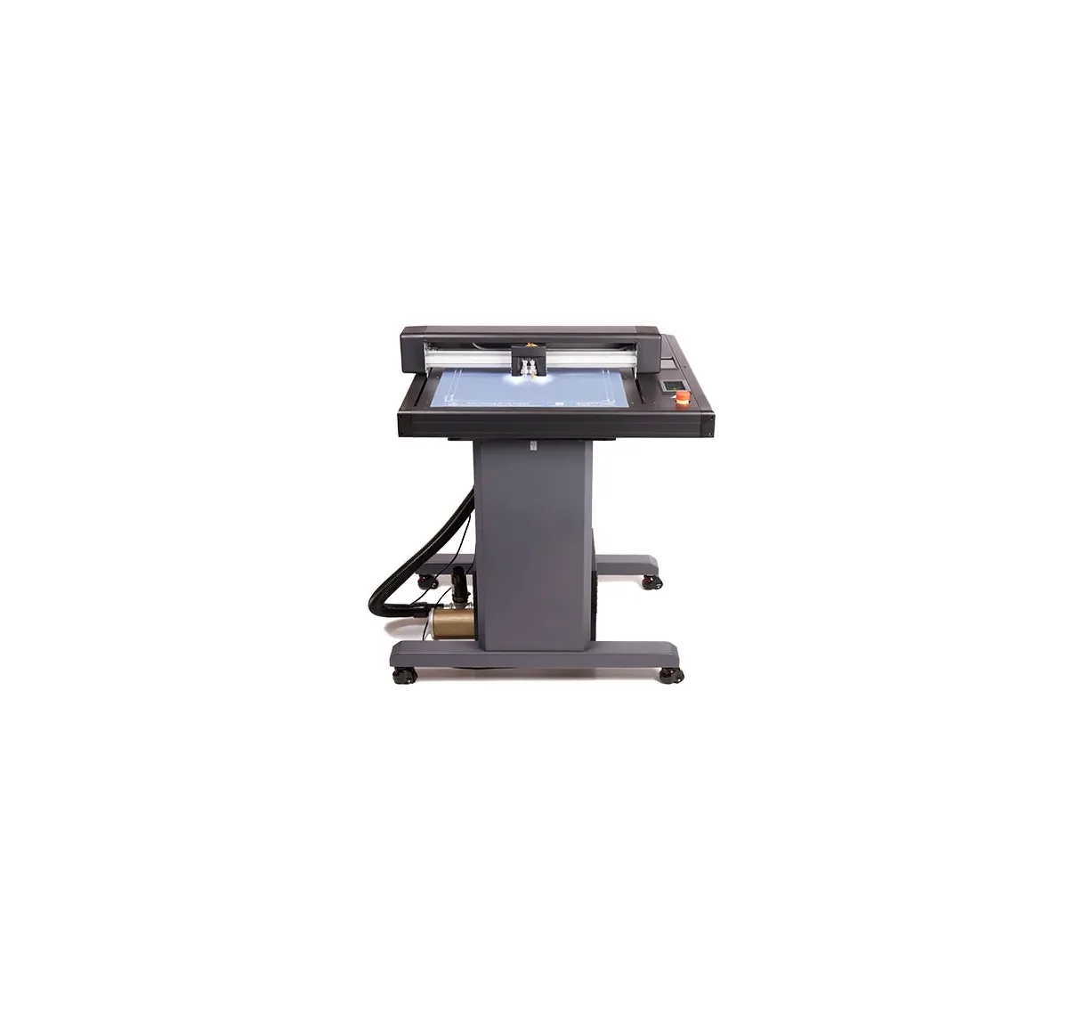 Il nuovo software di taglio multilingue, il pannello di controllo LCD touchcreen e il sistema avanzato di riconoscimento dei marchi di registro, garantiscono la completa gestione di tutte le funzioni in modo professionale. Grazie alle nuova telecamera ad alta risoluzione CCD, è possibile la lettura del marchio anche su supporti trasparenti e colorati oppure anche su crocini bianchi o di diversi colori. Incluso di pompa a vuoto di aspirazione con custodia acustica e silenziatore. I modelli VULCAN FC sono inoltre forniti con stand di supporto di serie.