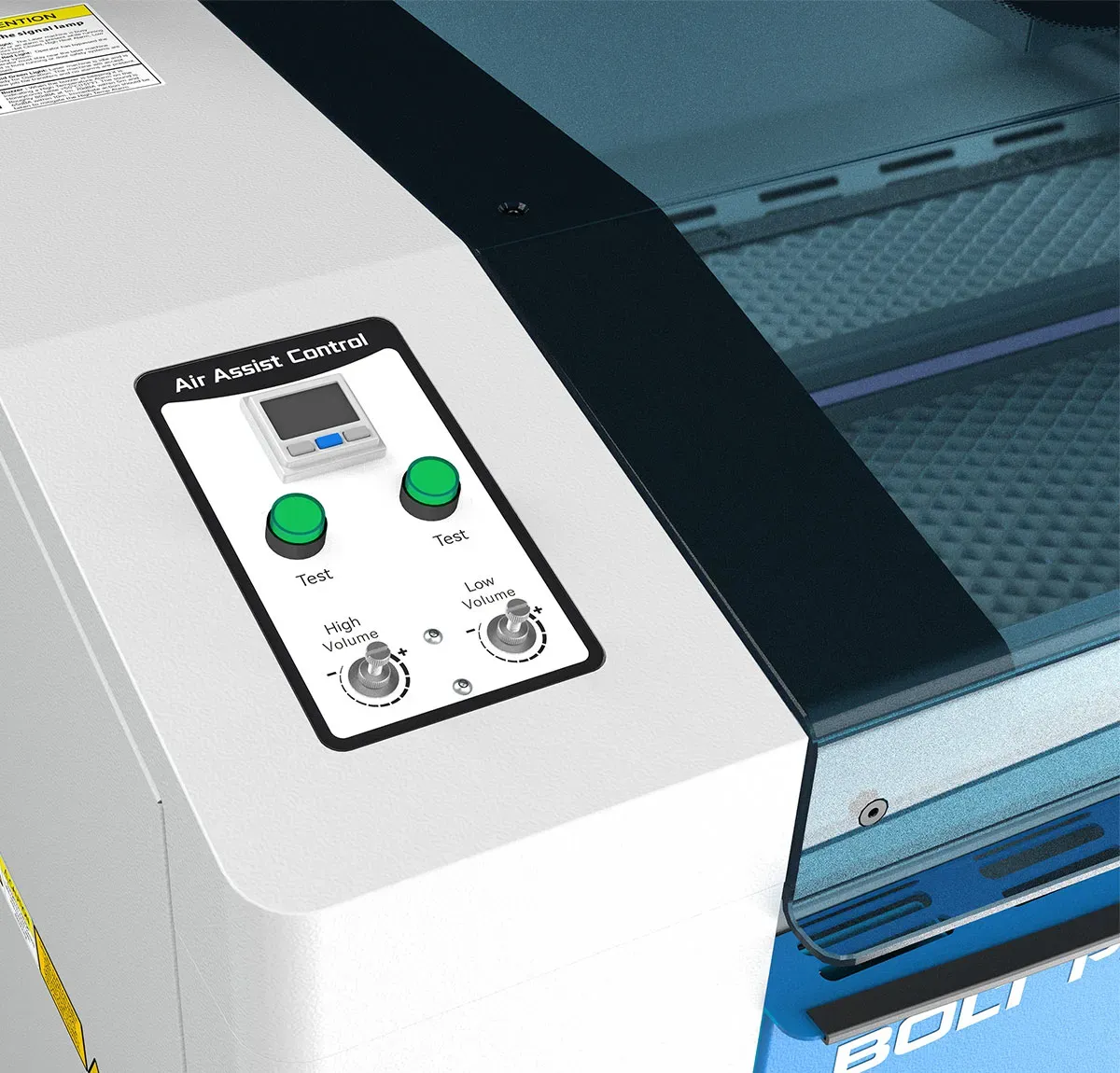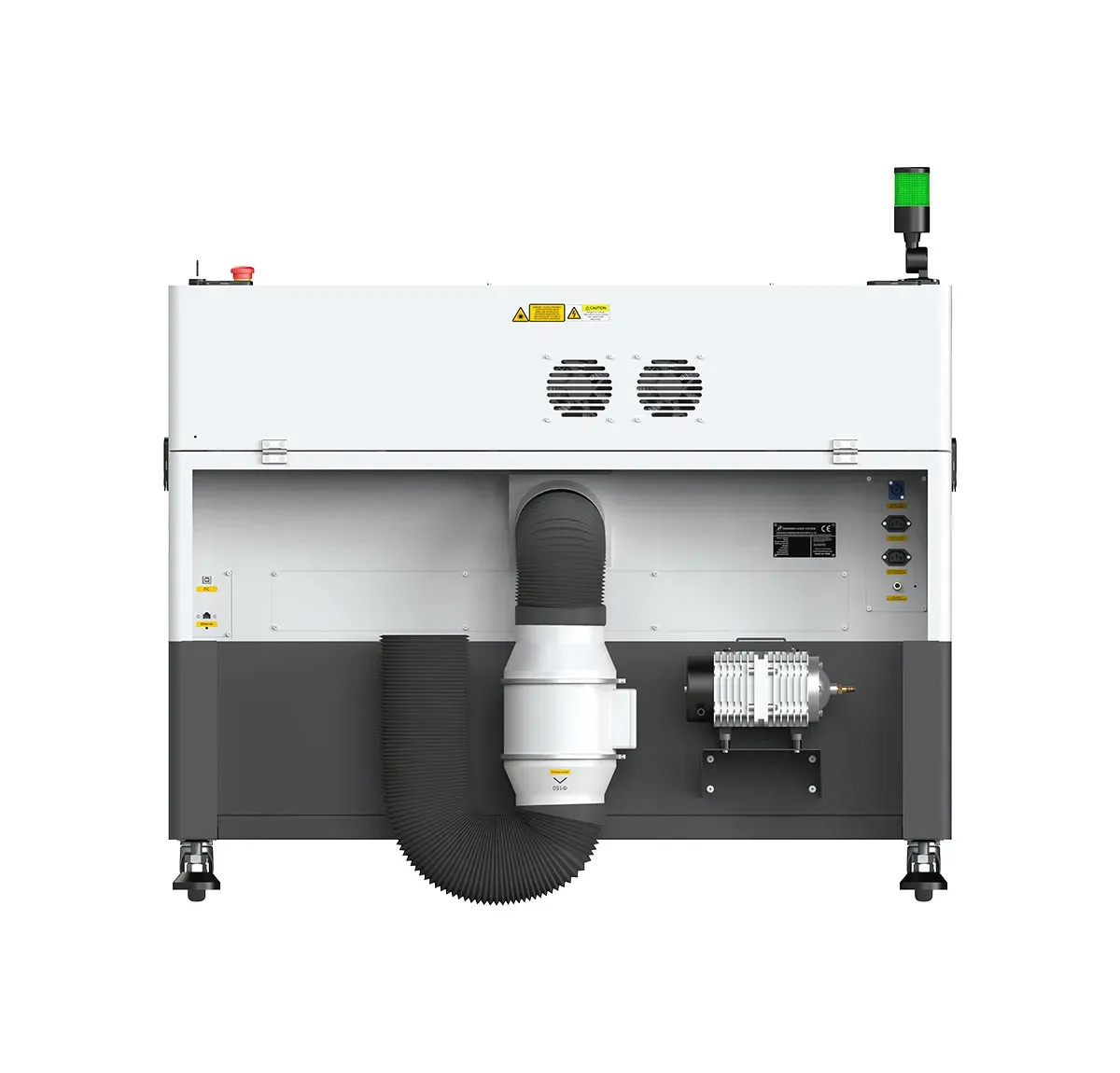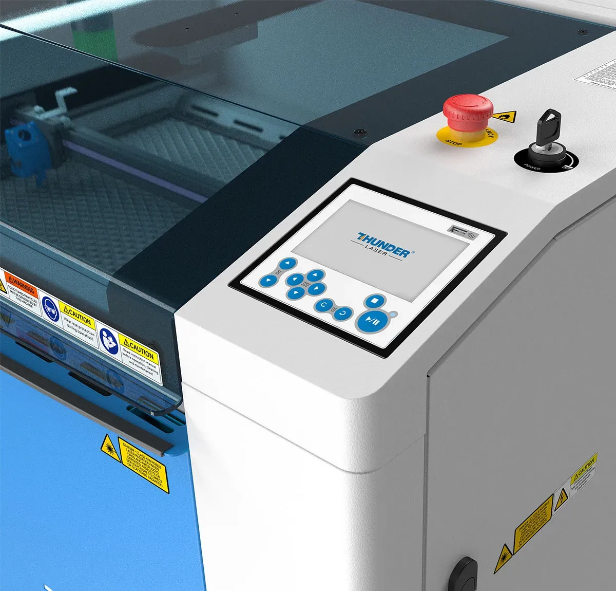Grazie al suo pannello di controllo LCD integrato da 5 pollici è possibile gestire la macchina completamente dal display, anche senza un collegamento al PC. Memoria di 1 GB per salvare i lavori (fino a 100) all’interno della macchina stessa. Oltretutto non prevede l’utilizzo di chiller per il raffreddamento in quanto sistema con sorgente in metallo con raffreddamento ad aria.