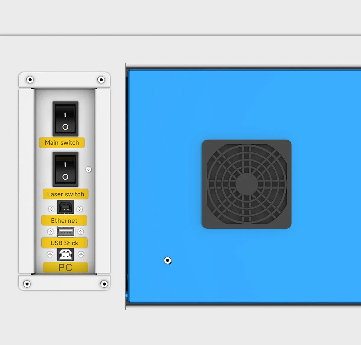 • Sistema di aspirazione intelligente: il sistema di aspirazione entra in funzione solo durante le operazioni, riducendo il consumo energetico. L’aspirazione simultanea superiore e inferiore protegge sia le lenti sia i materiali dai fumi e dalla polvere generati durante la lavorazione laser.