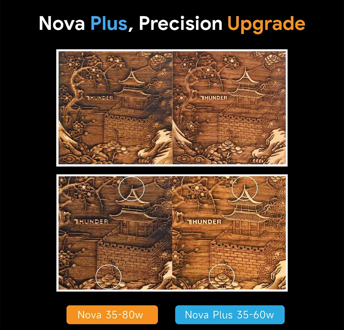 La gamma di laser CO₂ THUNDER NOVA PLUS è l’evoluzione della gamma THUNDER NOVA. È stata studiata per offrire prestazioni elevate e affidabilità costante, garantendo risultati di taglio e incisione di precisione su una vasta gamma di materiali, tra cui legno, acrilico, vetro, pelle, tessuti, MDF, gomma e altro.