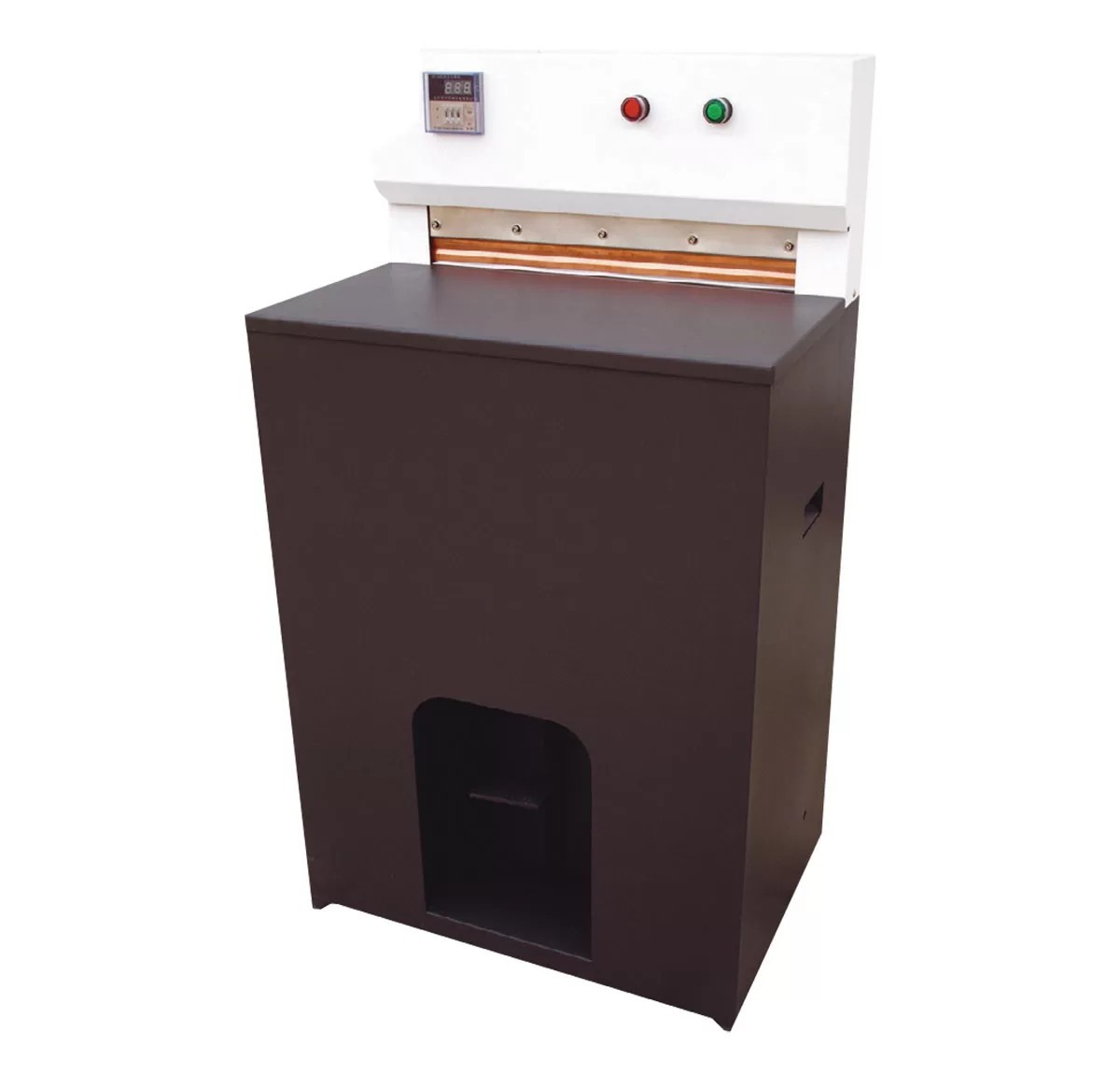 Pressa canaletto in grado di formare il canalino di apertura tra dorso e copertina del libro, realizzato mediante pressione e lame riscaldate che vengono alimentate da resistenze elettriche.
