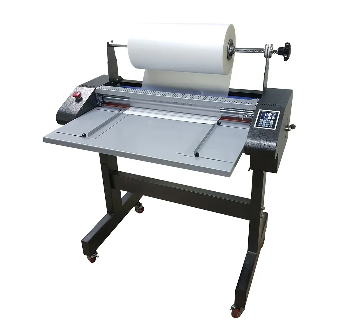 L’ampio piano di lavoro frontale è stato progettato per lavorare comodamente, facilitando notevolmente l’alimentazione dei fogli. La perforazione applicata sulla parte superiore del rullo di laminazione permette di staccare facilmente a mano il foglio plastificato durante l’applicazione monofacciale, senza l’ausilio di strumenti di taglio.