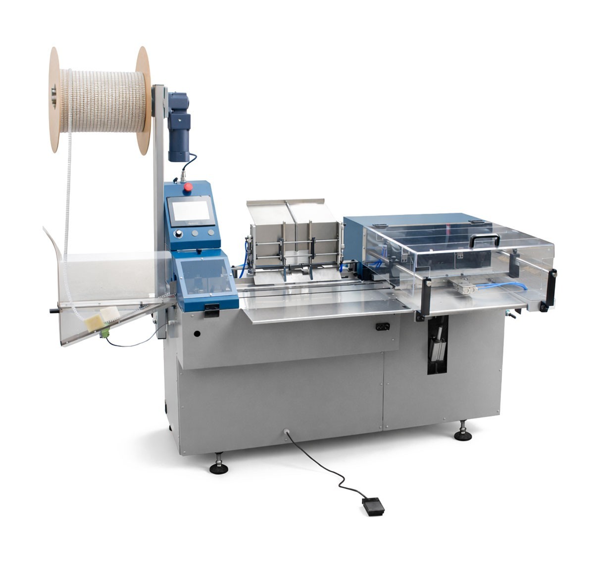 AUTOBIND WIRE-O può lavorare con spirali metalliche di diverse dimensioni senza necessità di cambiare gli utensili di rilegatura. La macchina gestisce automaticamente l’intero processo: taglia la spirale metallica alla lunghezza desiderata, la posiziona con precisione, la chiude e scarica il prodotto finito su nastro trasportatore.