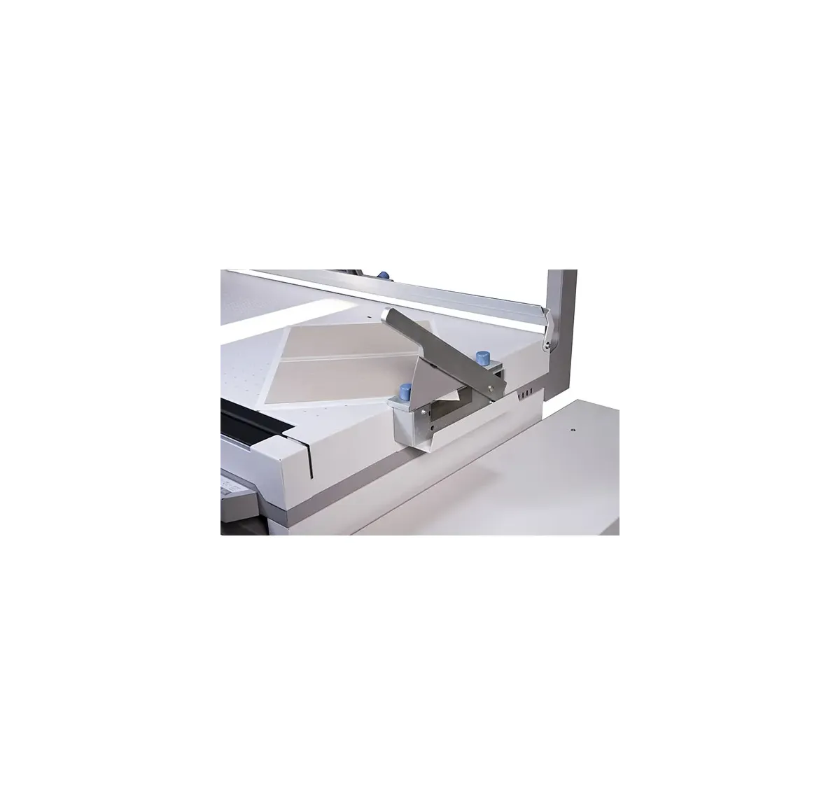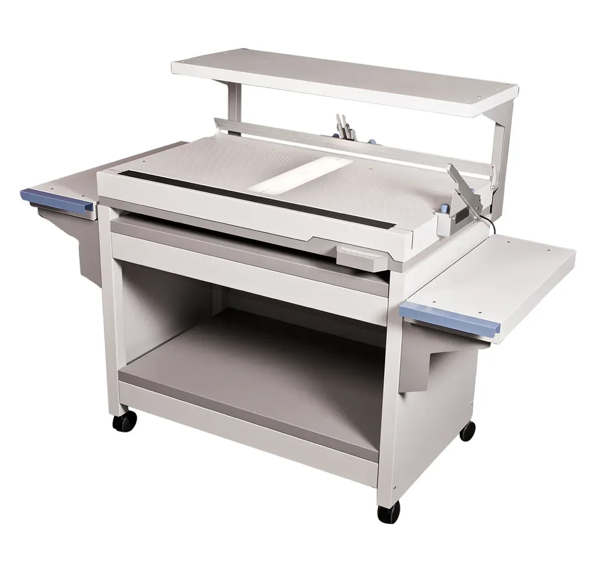 CASEMATIC A46A viene fornita full optional, completa di guide del dorso, spaziatori, taglierina per il rifilo degli angoli e stand completo di mensola superiore per stoccaggio materiale. Soluzione ideale per studi e laboratori fotografici, fotografi professionisti, tipografi digitali, copisterie.