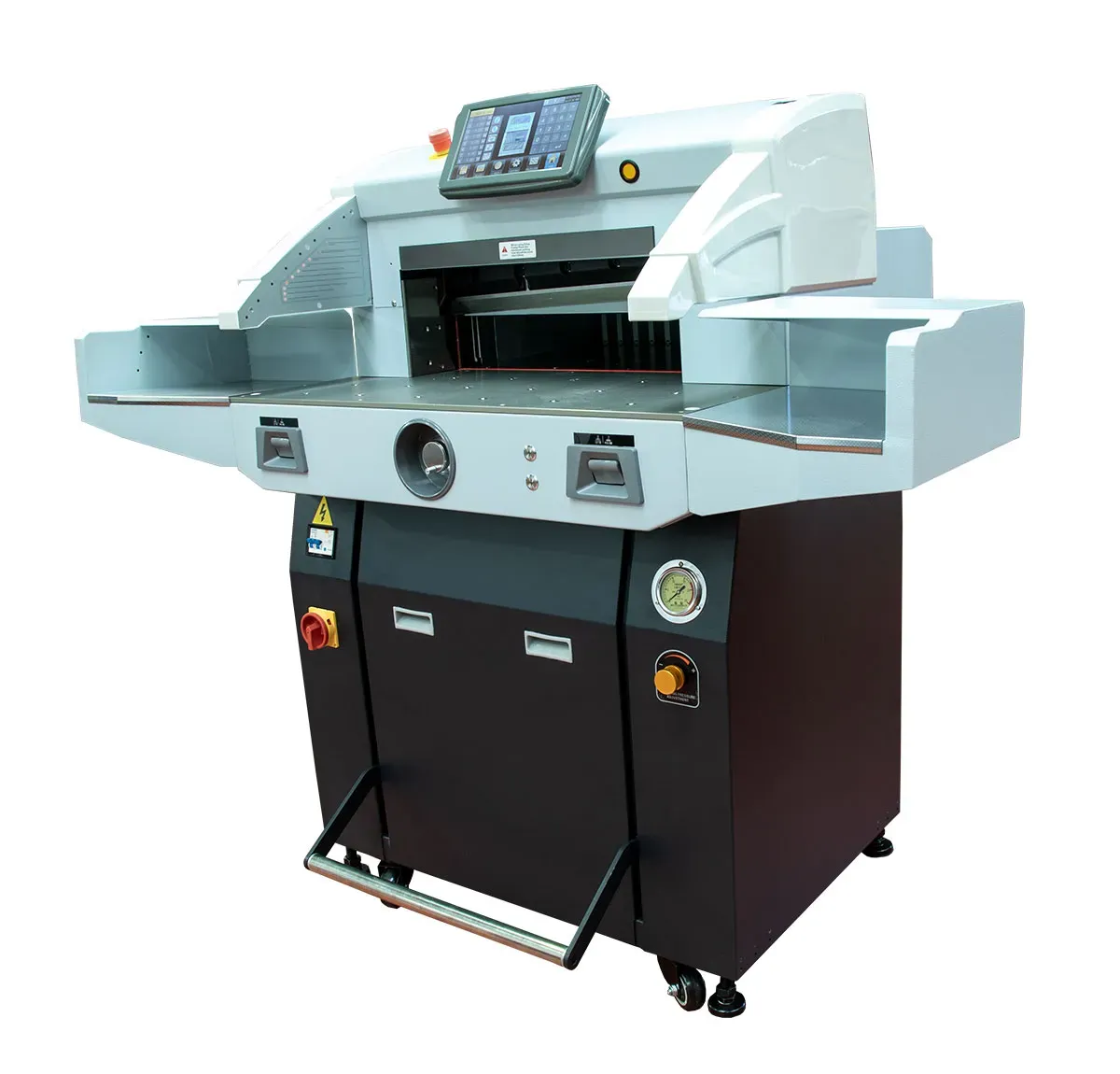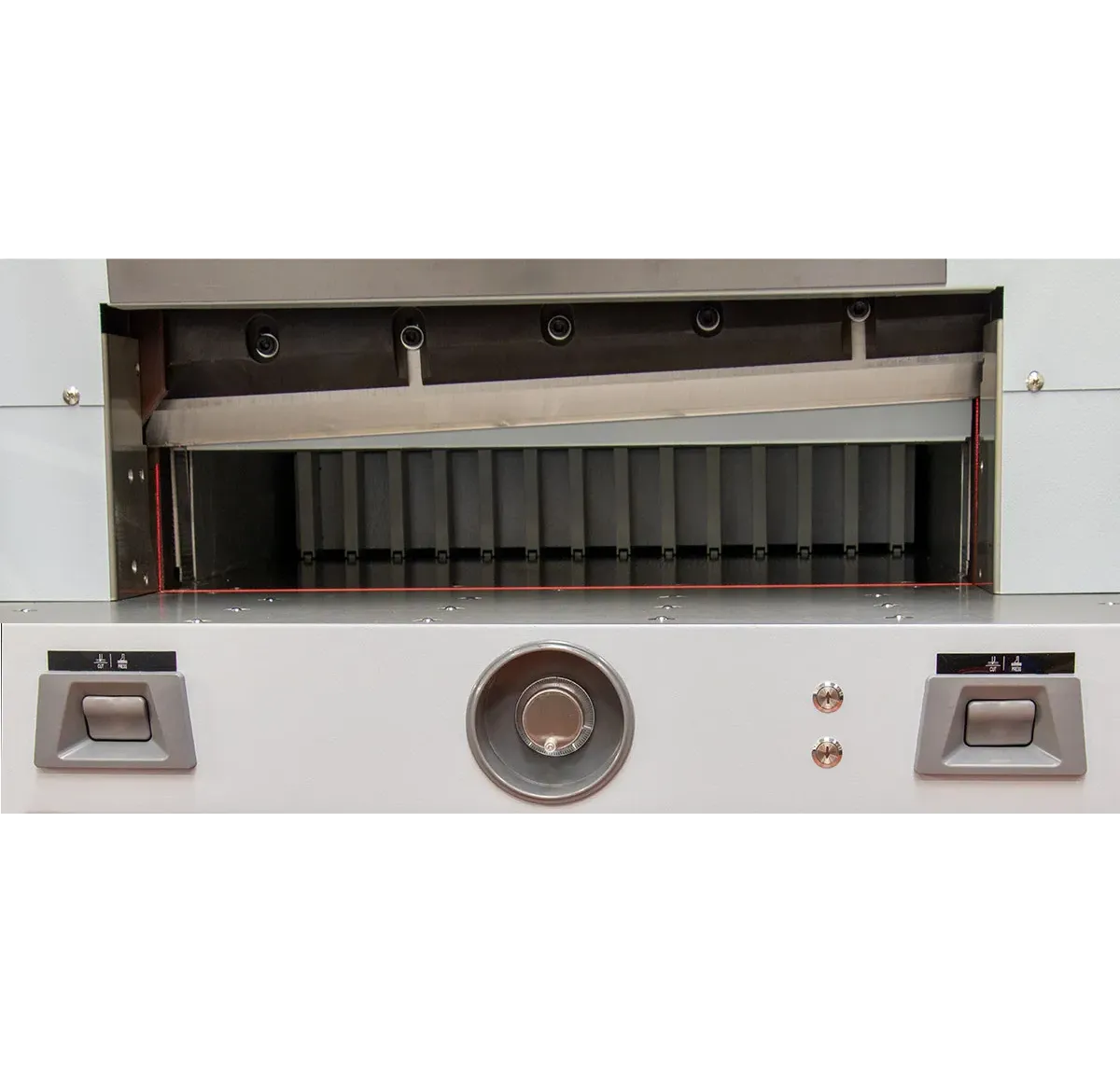 Il tagliacarte idraulico PL560H rappresenta una soluzione avanzata e affidabile per il taglio della carta, in grado di unire tecnologia, precisione e sicurezza in un unico macchinario. Grazie a una luce di taglio di 560 mm e a una profondità di squadra di 530 mm, la macchina garantisce tagli accurati, lavorando pile con spessori fino a 90 mm. L’impostazione dei tagli avviene in maniera intuitiva tramite un pannello di controllo LCD touchscreen, permettendo la registrazione di 80 programmi suddivisi in 80 steps ciascuno.