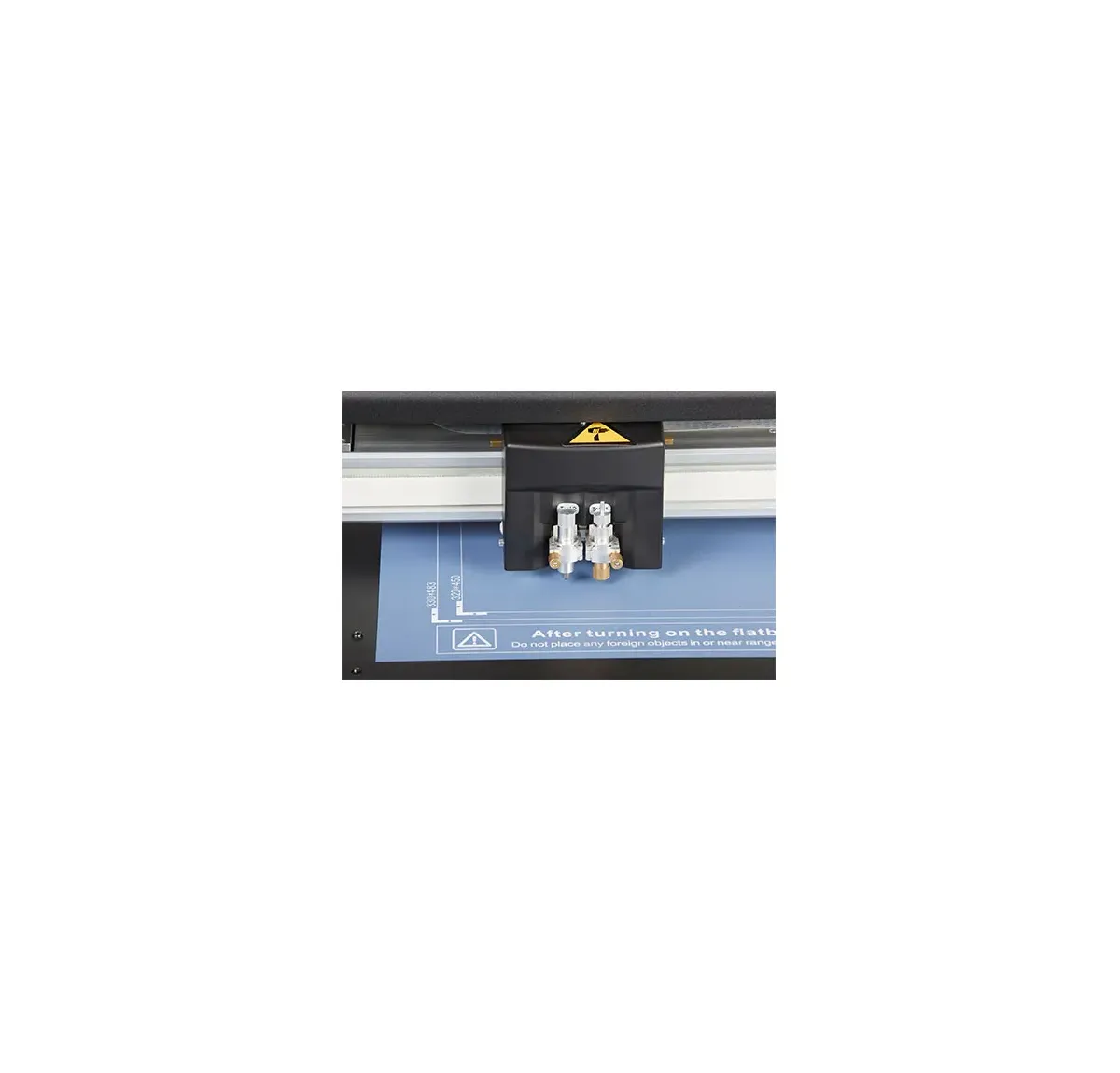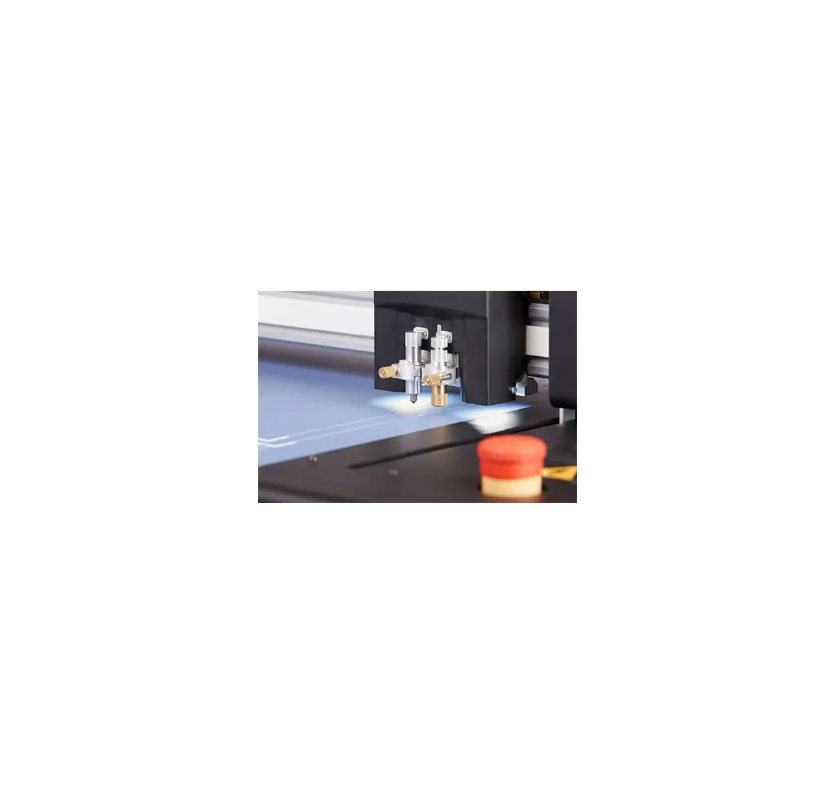 Il piano di lavoro offre un'area di taglio massima di 495 x 685 mm o 790 x 1080 mm ed è dotato di un comodo piano aspirante per il fissaggio del materiale. Dotata di un coltello di taglio e un tool di cordonatura. Tutto questo montato in un'unica testina di lavoro in modo che le operazioni vengano realizzate in contemporanea, evitando di cambiare tool a seconda della lavorazione.
