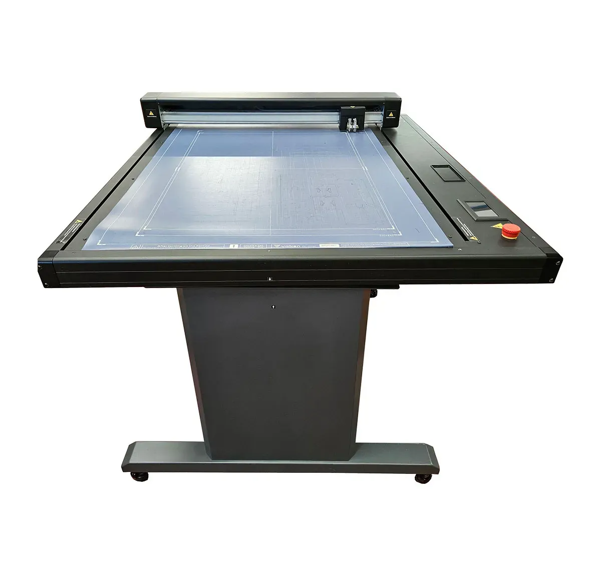 Il nuovo software di taglio multilingue, il pannello di controllo LCD touchcreen e il sistema avanzato di riconoscimento dei marchi di registro, garantiscono la completa gestione di tutte le funzioni in modo professionale. Grazie alle nuova telecamera ad alta risoluzione CCD, è possibile la lettura del marchio anche su supporti trasparenti e colorati oppure anche su crocini bianchi o di diversi colori. Incluso di pompa a vuoto di aspirazione con custodia acustica e silenziatore. I modelli VULCAN FC sono inoltre forniti con stand di supporto di serie.
